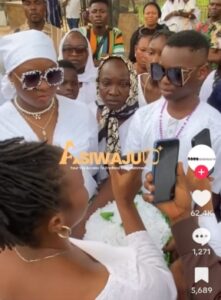 A man dressed in White had informed that the former husband was not in town as of the time of the burial but would like to pay his last respect to Omije-Ojumi in a telephone conversation.